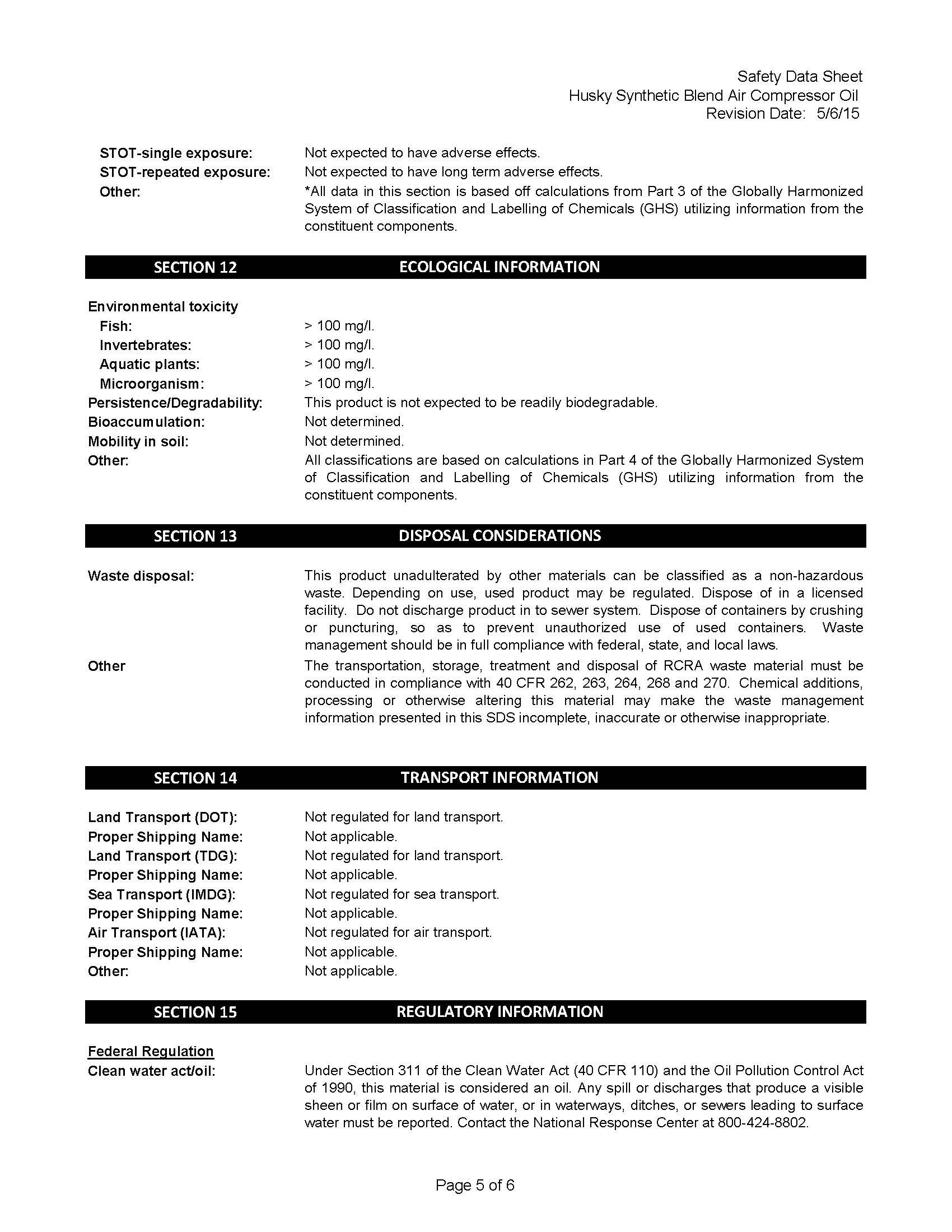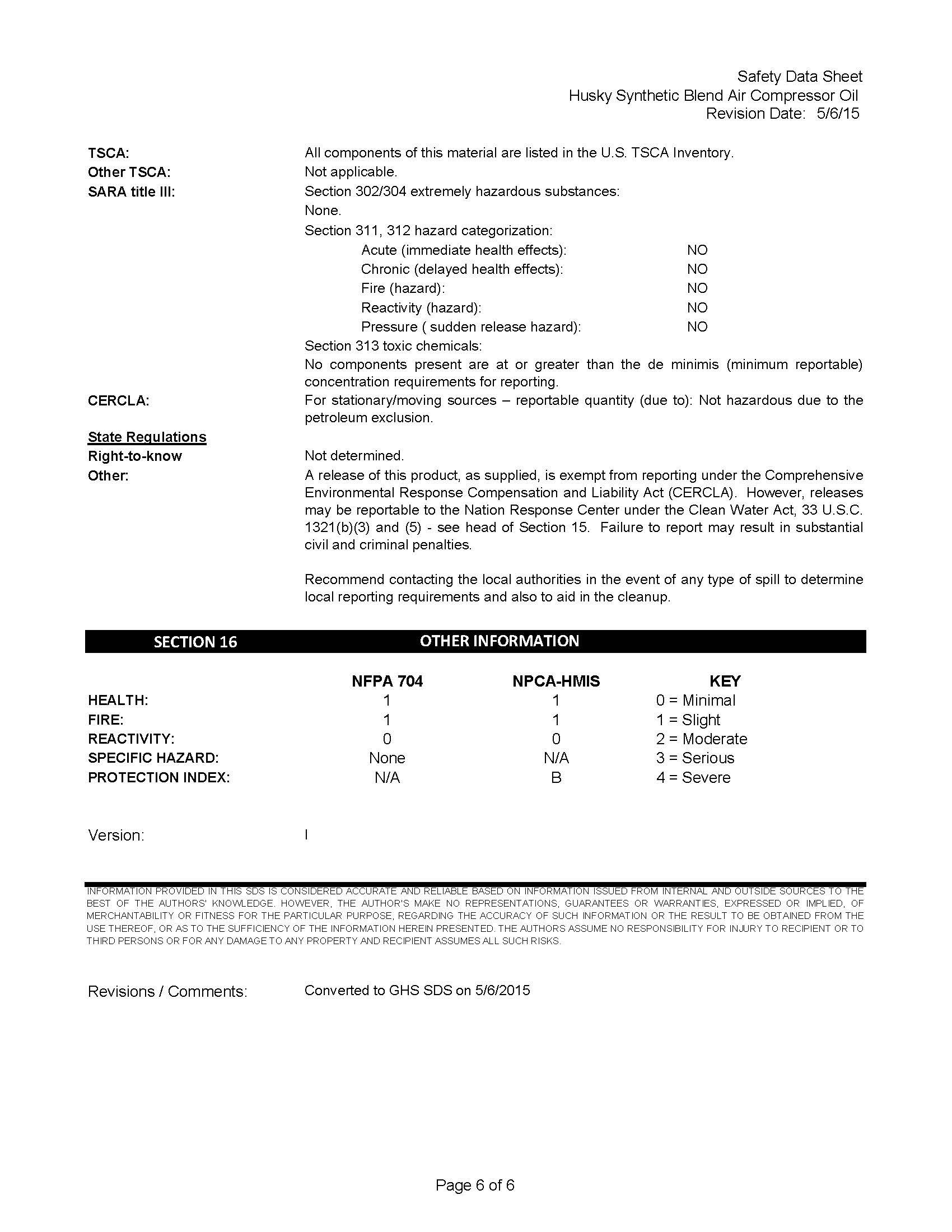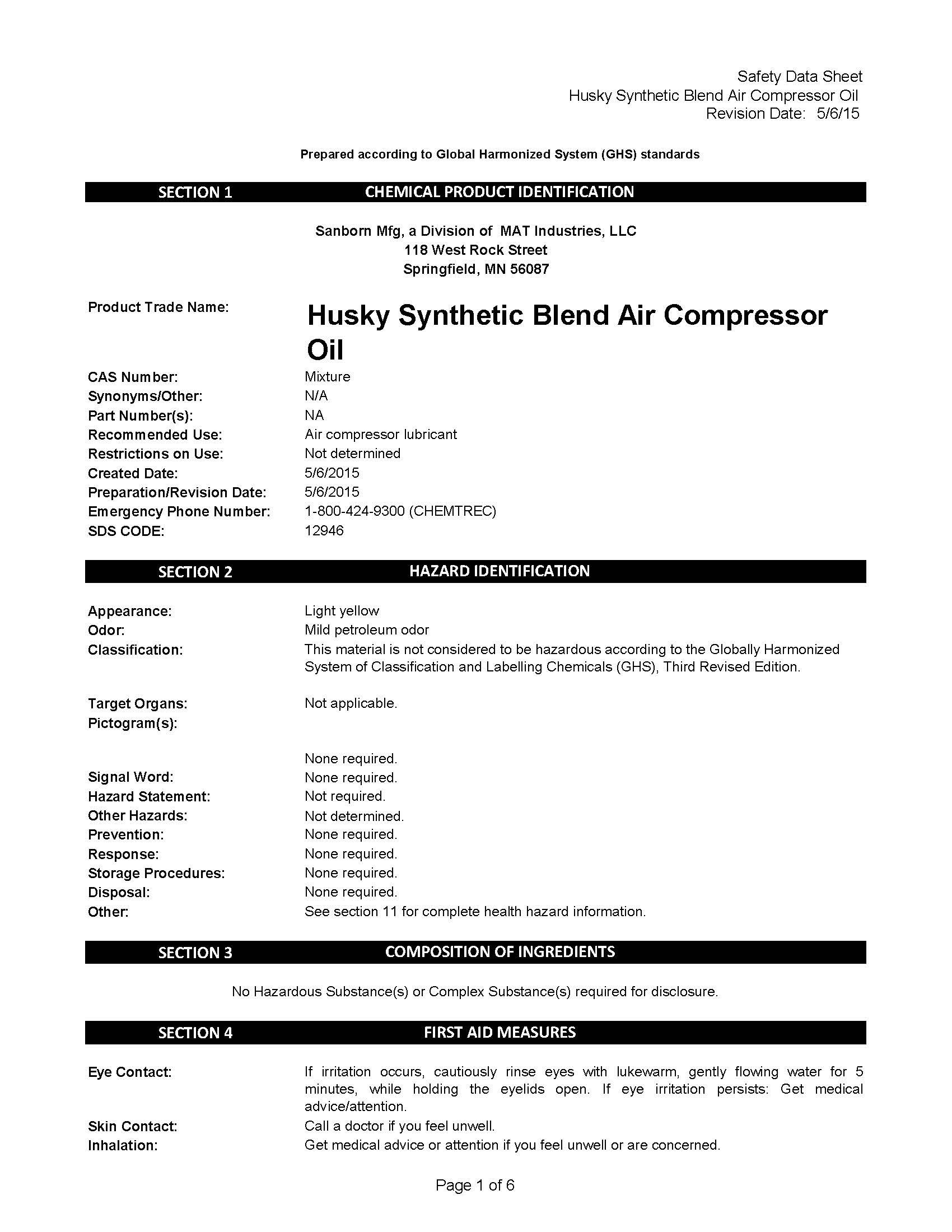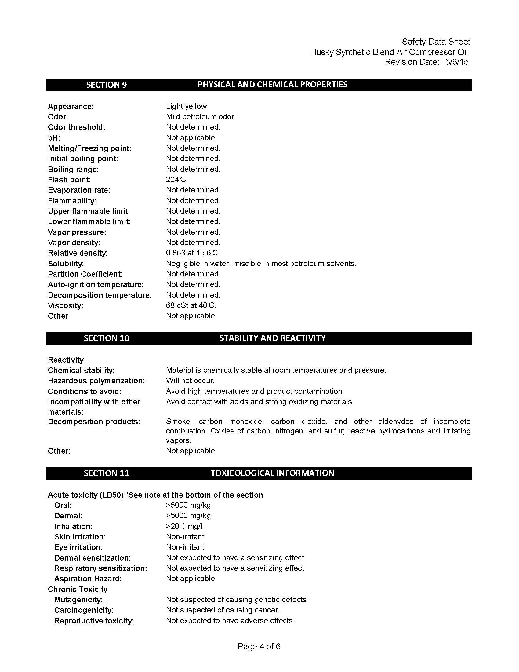 • Husky Compressor Oil